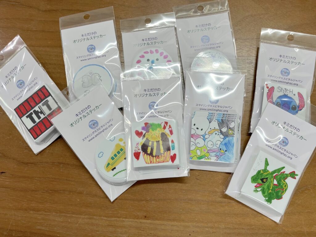 リターンの中に「子ども達がデザインしたオリジナルステッカー7種1セット」というのがありますが、これはコロナ禍で病棟に入って活動ができなくなったのを機に開始した制作プログラム「キミだけのオリジナルステッカーを作ろう!」がもとになっています。